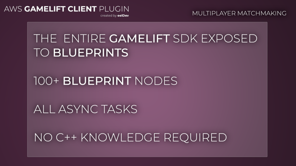 Whether you’re looking for a fully managed matchmaking system or want to run your own fleet of servers, this plugin seamlessly integrates GameLift into your Unreal Engine projects.