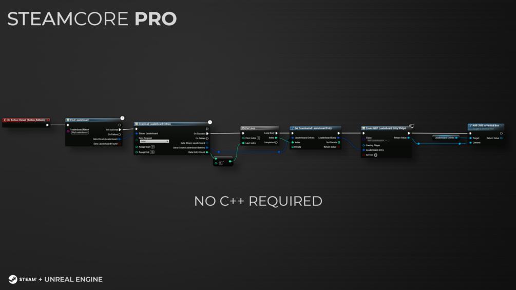 Take full control of Steamworks integration in your Unreal Engine project with SteamCore PRO, the most complete and flexible Steam plugin available. Packed with powerful features, SteamCore PRO is perfect for both indie and professional developers looking to seamlessly integrate Steam services without modifying engine source code.